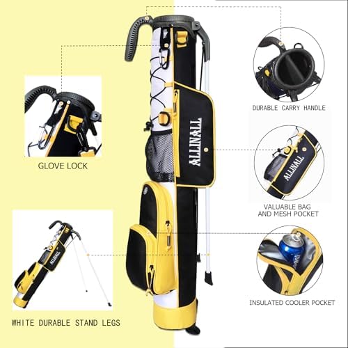 ALLINALL Sunday Golf Stand Bag- Lightweight Easy Carry Bag with Padded Strap, Durable Pitch &Putt, Practice Ranger Par 3 & Executive Courses for Men & Women–31.5 inches Tall