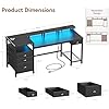 Furologee 60" Black Computer Desk with 4 Drawers and Printer Space, Gaming Desk with LED Lights and USB Power Outlets, Home Office Desk with Fabric File Cabinet,Study Work Table with Shelf for Bedroom