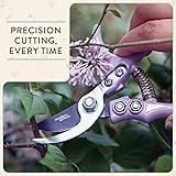 Designed for Everyday Plant Care: These garden hand pruners offer reliable performance for everyday plant maintenance; whether used as plant pruners - their fine-tipped, rust-resistant, chrome-plated sharp carbon steel bypass blades deliver clean, precise cuts; perfect for trimming blooms, hedges and maintaining balcony pots or kitchen gardens; the compact size makes them ideal for tight spaces and flexible stems Safety Lock for Peace of Mind: These hand pruners feature an integrated safety latch that keeps the blades securely closed when not in use; store them safely in drawers, totes, or in gardening kits; ideal for beginners and plant lovers who value safety without sacrificing performance; these garden supplies handheld offer reliable control for mindful and organized gardeners Precision Tip for Delicate Snips: Featuring a high-carbon steel bypass blade, this small scissors tool ensures sharp, clean cuts - ideal for flexible stemmed plants like roses, shrubs, hydrangeas and many more; It is capable of cutting branches and limbs up to 1/2" dia; Ideal for anyone in search of indoor plant accessories or space-saving plant trimmers; also effective for deadheading or hedge trimming where detail matters Comfortable Grip for Extended Use:Thoughtfully designed for ergonomic comfort, these pruners help reduce hand fatigue during longer trimming sessions; The handle shape supports natural hand movement, making it easier to maintain control without strain; Perfect for hobbyists or home growers looking for lightweight, efficient plant pruners that deserve a place in every garden hand tools set Package Contents: 1 Unit of Modern Sprout Garden Pruner (6" X 3.25") - Sage
