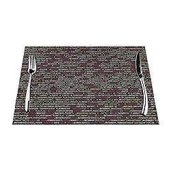 YzgWjBhd Programmer Programming Code Printed PVC Woven Placemats, Funny Washable Kitchen Dining Table Mats, Outdoor Placemats Set of 6, 12 X 18 Inch