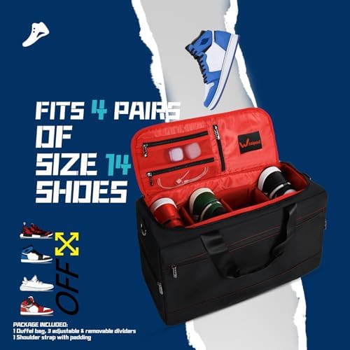 Sneaker Duffel Travel Bag, Waterproof Sneaker Duffle Bags Shoe Bags for Travel, Basketball Sports Gym bag with 3 Adjustable Dividers, & Shoulder Strap
