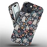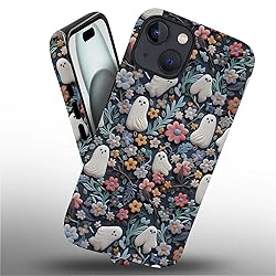 Generic Case Compatible with iPhone 15,Scratch Resistant Hybrid 2-Layer Hard Shell Bright Phone Case,Spooky Ghosts Floral Halloween