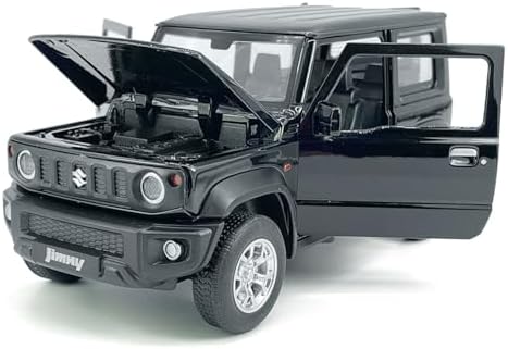 - [Interactive Functions] Equipped with a pull-back mechanism, opening doors, hood, and trunk, as well as light and sound effects, this 1/24 Jimny model car offers immersive and engaging fun.