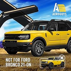 - Our AEROGUYS window visors not only add to your vehicle’s looks, but they have a much more practical purpose. They are one of the most under-rated of all car accessories, but once you have used them, you know just what a difference they make to your ride. Our window visors are manufactured with the flexible and durable polycarbonate. The AEROGUYS window visors are specially engineered by using cutting-edge technology to deflect rain, wind, sunshine, snow and keep your car cooled. The 4-piece set comes with easy to install 3M tape and installation manual. PRODUCT FEATURES: - Condition: 100% Brand New; - Custom fit: for Ford Bronco Sport 2021-2026; - Package includes: 4 pcs window visor deflectors (2 front/2 rear), prep pad, installation manual; - Color: Smoked black tinted; - Material: High quality durable polycarbonate. Features: - Fresh air even while raining; - Reduces sun glare; - Gives your vehicle a cool upgraded look; - Car wash friendly; - Easy in-channel installation; No-drilling required; - Visors are secured with 3M tape. We have visors for most car models. Pick your car make and model and the type of visor you want. We offer a 100% satisfaction guarantee! Order now and get our window rain guards right away!