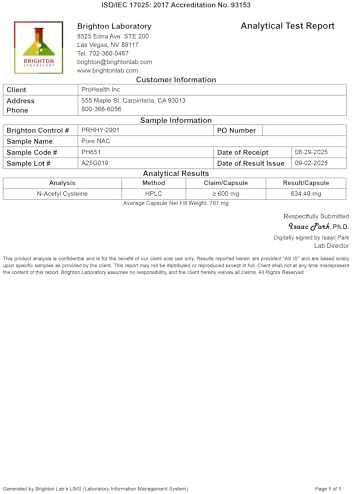 - THIRD-PARTY TESTED IN THE USA. Every batch of ProHealth Pure N-acetyl Cysteine is manufactured in an FDA-registered, GMP-certified facility. Plus, it’s third-party tested in US laboratories to ensure the highest quality, purity, and potency. Certificates of Analysis are available.