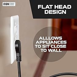 - The Iron Forge Cable 90 Degree Slim Plug Head Replacement Power Supply Cord is the ultimate replacement power cord 3 prong solution for major appliances and tools, providing reliable power and durability in a 14 gauge 3 wire electrical cable design. Built for high-performance use, this 3 wire power cord is ideal for heavy-duty applications, including air conditioners, dishwashers, dryers, and more. The 15 amp power cord supports 125 volts and 1875 watts, ensuring safe and efficient power delivery for household and industrial settings. Designed with a 90-degree flat plug, this 3 prong cord replacement fits tight spaces without obstructing furniture, making it a convenient and space-saving option. Constructed with durable vinyl insulation, the SJTW-rated cable is resistant to moisture, abrasion, and sunlight exposure, ensuring longevity for both indoor and outdoor use. The reinforced blades protect prongs from bending or breaking, keeping your connection secure and reliable. UL-certified and built to the highest safety standards, this replacement power cord 3 prong ensures peace of mind while powering your essential appliances. Iron Forge Cable, a U.S. veteran-owned business, is committed to providing top-quality products with outstanding customer support, so you can trust in the reliability and performance of this 15 amp power cord for years to come.