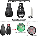 【Compatibility】Compatible for Dodge Ram 1500 2013 2014 2015 2016 2017 2018 2019 2020 2021, Dodge Ram 2500 2013-2018, Dodge Ram 3500 2013-2018, Dodge Ram 4500 2013-2018, Dodge Ram 5500 2013-2018, etc. FCC ID: GQ4-53T. Fit for Part Numbers: 56046953AG, 56046953AD, 56046953AC, 56046953AF, 56046953AE. 【3 Buttons Keyless Entry Remote Control Car Key Fob Shell Replacement 】Best replacement for a key fob with broken buttons or worn key case. Designed with 1:1 key fob mould, perfect match with your original key fob. The key fob cover buttons are very sensitive and does not affect the key signal. 【What You Will Get】Package Includes: 1 x 3 Button key fob shell replacement fits for Dodge, come with uncut key blade blank, 1 x keychain and 1 x mini screwdrivers. Please Note: Includes car key fob case shell and uncut keyblade only, No electronics interior (No remote control/No battery/No transponder chip). 【No Program Requried】Use our supplied screwdriver to dismantle the key fob remote case. You still need to move your existing remote fob internals including transponder, battery & other electronics over to this new key shell. The key blade is uncut blank and needs to be cut to match your car by local dealer. 【Premium Materials】The key fob case is made of upgraded ABS plastic and zinc alloy, which is rugged, wear resistance, durable and not easy to break. The key fob housing size: 4.1x6.55x1.52cm / 1.62x2.58x0.6 inches. Please compare with our product images before purchasing to ensure that your original key fob looks exactly as pictured.