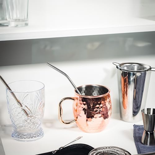 - The kit includes: 20/27oz.stainless steel shaker, strainer, 1/1/2oz. Double jigger, citrus juicer, metal straws with a cleaner, mesh strainer, julep strainer, mixing spoon, bottle opener, wine corkscrew, muddler, wine stoppers, peeler,ice tongs and a microfiber cloth.