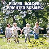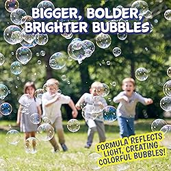 10X BUBBLE POWER: This 32 fl oz bubble concentrate creates up to 2.5 gallons of regular bubble solution or 1.5 gallons of giant bubble mix, delivering bigger, brighter, and longer-lasting bubbles. WORKS WITH ALL BUBBLE TOYS: Designed for bubble machines, wands, blasters, and giant bubble makers, this versatile solution ensures hours of fun for kids and adults alike, making it perfect for playdates, parties, and outdoor adventures. EASY MIX FORMULA: Simply combine 1 cup of concentrate with 9 cups of water for regular bubbles or 3 cups of water for giant bubbles. With the smooth blending formula, all you have to do is pour, mix and play! PERFECT FOR ANY OCCASION: From backyard barbecues to weddings and birthday parties to play dates, this bubble solution can create unforgettable bubble memories at any event. COLORFUL FUN: Watch as the bubbles shimmer and shine with all the colors of the rainbow! Kids will love chasing and popping the bubbles while engaging in active, imaginative play. SAFE AND NON-TOXIC: Solution is safe, non-toxic and passes all US safety testing regulations. Not for consumption. Recommended for ages 3+.