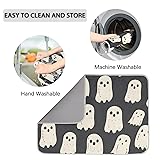 Halloween Drying Mats Absorbent Polyester Drying Mat White Ghosts Dish Drying Mat Halloween Washable Pad for Kitchen Counter Kitchen Decor Accessories 18 x 24 inch