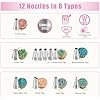 - Piping Bags and Tips Set: Includes 12 numbered icing piping tips, 50 disposable & 1 reusable 12” frosting pasty bags; Allow you to create a variety of designs, including simple dots and lines as well as intricate flowers and leaves; The included coupler makes changing tips on your piping bags a breeze without emptying the bag or creating any mess