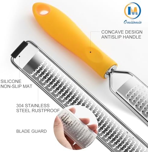 - 【Save Space in The Kitchen And Drawer】Replace your bulky, unsafe, and hard-to-clean box grater, cheese grater electric, cheese grater with container or heavy electric food processor with a single OIM OMIIOMIO Classic Zester Grater & Food Shredder. The metal parmesan cheese grater teeth won't clog up the way other graters for kitchen do, so it's a snap to clean. Just pass your cheese grader under running water