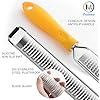 - 【Improve Your Cooking】Amaze your friends with new, restaurant-like recipes. Add strong new flavours with fresh lemon zest without any bitter pith taste. When using the chef zester with hard cheeses such as parmesan, you'll get a nice pile of grated cheese that melts almost instantly on hot pasta