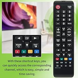 - Wide Compatibility: This universal infrared remote control is designed for all new and old Samsung TVs, supporting 2K and 4K UHD Smart TVs. It is compatible with up to 40 Samsung remote models, including BN59-01199F, AA59-00666A, and more. Plug-and-Play: No programming is required! Simply insert the included batteries and start using it right out of the box. It also features Smart Hub buttons for easy access to your favorite functions. Batteries not be included. Stable Performance: Offers a longer transmission range and reliable performance. This remote replaces your damaged or old one and covers all the functions of the original Samsung remote, suitable for Samsung LCD, LED, HDTV, and 3D Smart TVs. Compatible with Many Models: Works seamlessly with a variety of Samsung TV models, such as UN60J6200AF, UN55J6200, and many others. For quick searches, use CTRL+"F" to find your Samsung TV or remote model number in the description.
