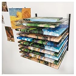 Versatile Wall-Mount Drying Rack Art - Easy Installation without Wall Damage:** Perfect for renters and versatile enough for any wall type, this drying rack comes with adhesive stickers and screws. Install it on painted walls, wood, tile, metal, or glass without causing damage. Preserve your masterpieces and keep your artworks, canvases, paintings, and drawings organized and dry no matter where you are. 10-Piece Sturdy Iron Drying Rack For Art Shelves - Built to Last:** Crafted from durable iron with robust welded construction, this kids art drying rack ensures long-lasting performance. Each shelf measures 15.7 x 11.8 inches and is spaced 1.57 inches apart, laying completely flat to securely hold up to 3 lbs per shelf. Rest assured, your artwork will stay safe and secure without the risk of falling. Wide Applications - Versatile Drying Solution for All Your Art Projects:** Safely dry a variety of creations including paintings, drawings, watercolors, posters, and other artwork. A preschool classroom must haves, this drying rack art classroom is perfect for studios, schools, families, kindergartens, early education centers, creative studios, and any other setting where drying oil paintings is necessary. No Smudging - Spacious and Organized Drying:** Each shelf of this classroom drying rack for art offers ample space, ensuring your artwork is stored, displayed, and dried in a compact, organized, and safe manner. This design allows paint to dry quickly without any risk of smudging, preserving the integrity of every masterpiece. Perfect Gift and Hassle-Free Installation - Ideal for Art Enthusiasts:** This paper drying rack makes an exceptional gift for painting lovers, artists, teachers, friends, and families passionate about creativity. Setting up the drying rack for artwork classroom is effortless, as all necessary hardware and easy-to-follow instructions are included. Dimensions: 12.4"/31.5cm D x 15.7"/40cm W x 15.7"/40cm H. Service Guarantee - Peace of Mind with Every Purchase:** We stand behind the quality of our art drying rack small and offer a hassle-free warranty. If you encounter any issues, you can expect a satisfactory resolution. Our dedicated customer service team is available 24/7 to address any concerns, ensuring a response within 12 hours.