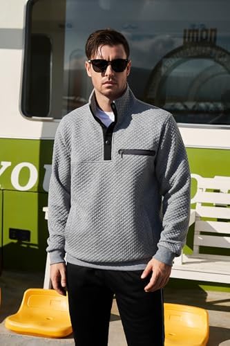 LBL Leading the Better Life Mens Sweatshirt Fashion Stand Collar Button Pullover Sweatshirts with Pockets