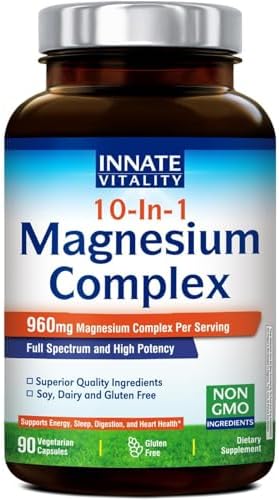 Innate Vitality 10-in-1 Magnesium Complex 960mg, 420mg Elemental Mag per Serving, with Magnesium Glycinate, Citrate, Malate, and More, Sleep, Digestion, Energy Support, 90 Vegan Caps