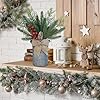 Winlyn 15"H Farmhouse Christmas Centerpiece Rustic Metal Milk Can Artificial Christmas Floral Arrangement with Pine Needle Cedar Red Berry Snowy Pinecone for Country Home Kitchen Holiday Mantel Table