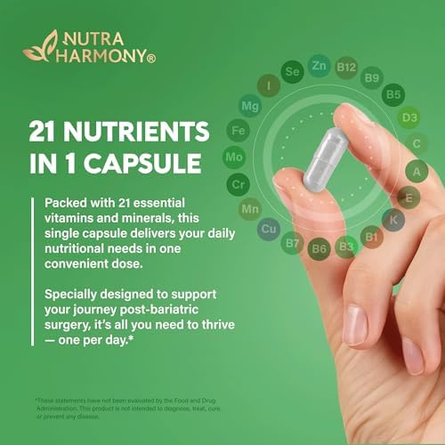 - Post-bariatric Support 21 in 1 — Bariatric multivitamin by NUTRAHARMONY formulated & developed to meet the needs of men and women in post-bariatric surgery of all types. Gastric bypass vitamins containing a complete multivitamin from all essential 21 vitamins and minerals.
