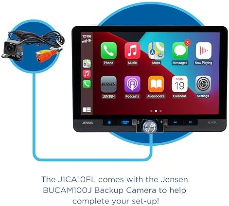 Jensen J1CA10FL-BUC 10.1-inch Certified Apple CarPlay Android Auto Wired or Wireless | Single DIN and Double DIN Touchscreen Car Stereo Radio | Bluetooth | USB Charge | Backup Camera Included