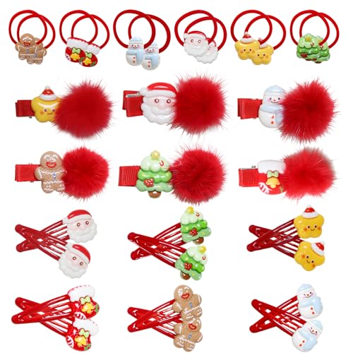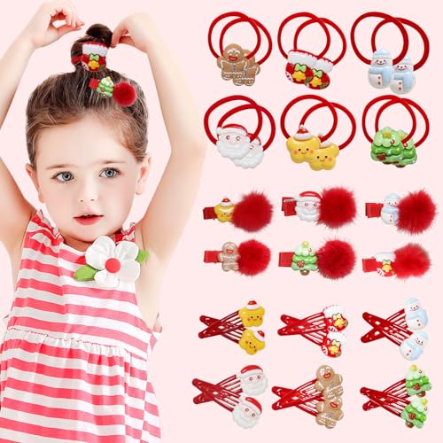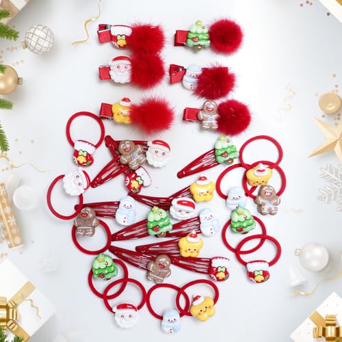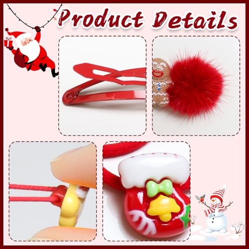 - Festive Variety:Our Christmas hair clips set includes 30 pieces featuring 6 plush Christmas clips, 12 classic hair clips, and 12 festive hair ties, showcasing delightful designs like snowmen, Santa, stars, Christmas trees, gingerbread men, and mittens, perfect for adding a charming touch to any holiday outfit.