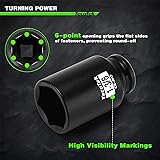 ✅【HIGH DURABILITY】Made of forged premium chrome molybdenum steel with a corrosion-resistant black phosphate finish to handle extreme levels of impact and torque changes. ✅【SET INCLUDES】10-Piece Deep SAE Impact Socket Set: 1-1/16",1-1/8",1-3/16",1-1/4",1-5/16",1-3/8",1-7/16",1-1/2",1-9/16",1-5/8". This 1/2" impact socket set is designed for use with impact wrenches, each socket is used to remove tough nuts and bolts on larger vehicles. ✅【6-POINT DESIGN】The impact socket set features a 6-point, high-torque design that contacts and grips the stronger flat sides of the nut or bolt head, not the weaker corners. ✅【DUAL MARKINGS】The markings on the sockets are nice high contrast and easy to read. ✅【ORGANIZED CASE】Come with a heavy duty storage case,making it easy to store and transport to different job sites or workspaces. All TecoTek Tools meet or exceed ANSI performance standards. It comes with 1 year quality guarantee.