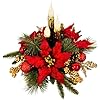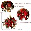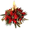 - Elegant Holiday Design: Features golden flameless candles, red poinsettia flowers, and golden pinecones, berries, and ball ornaments for a classic and luxurious Christmas display