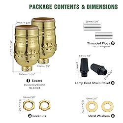 UL LISTED STANDARD LIGHT SOCKET -Standard U.S. lamp socket in vintage design, without an on and off switch, it's perfect for a lamp that you already have a line switch or wall switch. 4 COLORS DESIGN - The socket has 4 colors options that complements your existing lamp or home décor.It include the typical lamp fittings / threaded pipe,screw-in terminals for your repair or DIY needs. APPLICATION -Repair / make new vintage lamps; Rewire old lamps; restore vintage ceiling lights; Make lamps that already have line switches or wall dimmer switches. The light sockets are ideal for vintage pendant lamps, desk lights, wall lamps, and antique ceiling lights. SAFE AND EASY TO USE - The retro lamp socket(no switch) has a 250VAC/660W max electrical rating and can be used with #18 stranded copper wire.Easy to install and made for a quick fix within 30 minutes! WITH INSTRUCTIONS to guide you assembly process. No matter repair a vintage lamp or make a new custom lighting,you will have clear idea on each step through the wiring instructions.