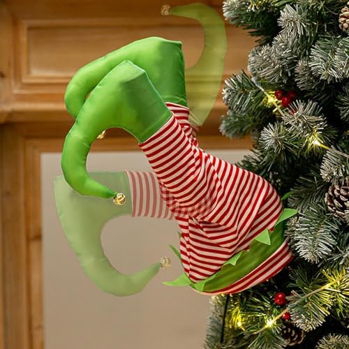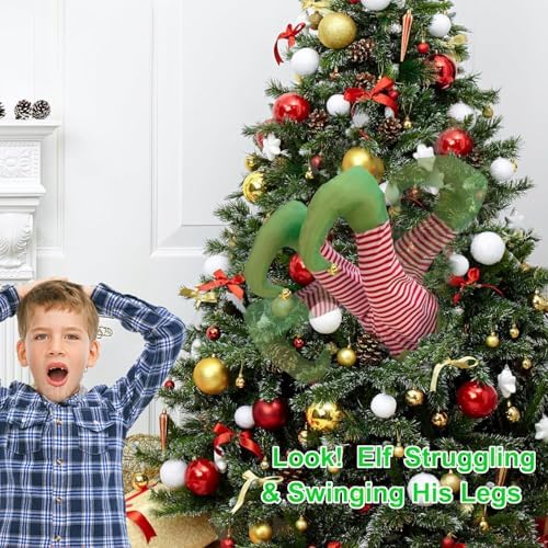 - SPREAD HOLIDAY CHEER WITH WHIMSICAL ELF ANTICS – Bring the North Pole right into your living room with this animated Elf leg decoration. Perfectly designed to create a fun, lighthearted atmosphere, the Elf’s kicking legs and colorful design will keep everyone in the holiday spirit. With high-quality flannel fabric and vibrant details, this playful animatronic will stand out among your Christmas tree decorations and keep the holiday magic alive year after year.