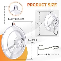 [SUPERIOR QUALITY]: Our suction cup hooks are made from clear PVC , ensuring they won’t yellow or lose their grip over time. The hooks are made from high-quality stainless steel, so suction cup hooks can support up to 10LB. [INVISIBLE DESIGN]: Featuring a transparent design, these suction cups are almost invisible and blend seamlessly with any décor, making them great for organizing items! [DETACHABLE & EASY TO USE]: The metal hooks and suction cups can be easily detached and used separately. You can even use the suction cups alone for crafting activities. Installation is a breeze—no tools or drilling required. Just press the suction cup onto the surface to hang items. It also includes a release tab for easy removal, ensuring your walls remain undamaged. [REMOVABLE & REUSABLE]: To remove the hooks, simply lift the hook to release the suction and use the tab to remove the suction cup, which will not leave a mark and damage the wall after removal. If the suction cup loses its shape or suction power, soak it in warm water, let it dry, and it’s ready to use again. [VERSATILE USE]: These strong suction hooks adhere securely to tile, windows, mirrors, glass, metal, plastic, and other smooth, flat surfaces. They’re ideal for organizing bathrooms, kitchens, living rooms, campers, trailers, RVs, hotels, stores, or dorms. An essential home accessory that truly delivers on its promise.