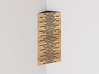 APPLICATIONS: These bass traps, made of perforated wood and acoustic foam, are excellent for low and mid frequencies. For optimal results, they are installed in corners between walls, or at the intersection of a wall and ceiling. Most commonly used in: Recording studios, home theaters, music rooms, office spaces, rehearsal rooms, auditoriums, conference rooms, cafeterias, hotels, bedrooms, churches, game rooms, podcast rooms, etc. ACOUSTIC SOLUTION: Improve the acoustics of your room with our high quality acoustic wood bass traps. These bass traps are the perfect solution for bass control, providing effective sound absorption and low-frequency hum suppression in any environment. Compared to conventional foam bass traps, our wooden acoustic bass traps will show significantly better results. We have a variety of exclusive designs and colors to choose from, allowing you to choose the perfect solution to suit your decor. SPECIFICATIONS: Absorption and Diffusion | ABSORPTION FREQUENCY: Low Frequencies | OVERALL NRC: 0.41 | SCATTERING RANGE: 63Hz to 2000Hz | MATERIAL: Laminated HDF and Acoustic Foam | DIMENSIONS: 500x235x105mm (19.7x9.25x4 inches) | BOXES OF: 2 units. MOUNTING OPTIONS: Each bass trap comes complete with double-sided adhesive tape that allow you to easily mount the trap in a corner. To fix the bass trap in the corner where the wall and ceiling intersect, we recommend using a combination of our adhesive tape and glue. It is best to use construction adhesive, so-called ‘liquid nails’. CUSTOMER SUPPORT: Our team is committed to providing a positive experience with every order. If you encounter any issues with your product, you can reach out through your Amazon account — we're always ready to assist.