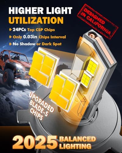 - 1800 METROS DE EXCELENTE VISIBILIDAD: 24 chips Blade-S mejorados, brazos de alta salida de 20,000 lúmenes que equipan su coche con un campo de iluminación más amplio y lejano. El faro antiniebla H4/9003/HB2 combina super brillo con buena asequibilidad, proporcionando un 600% más de luz y un 250% más de visión nocturna que el halogéneo original para una conducción segura en cualquier momento. Adiós a los halogéneos amarillos y tenues de serie y vea claramente con una luz súper brillante.