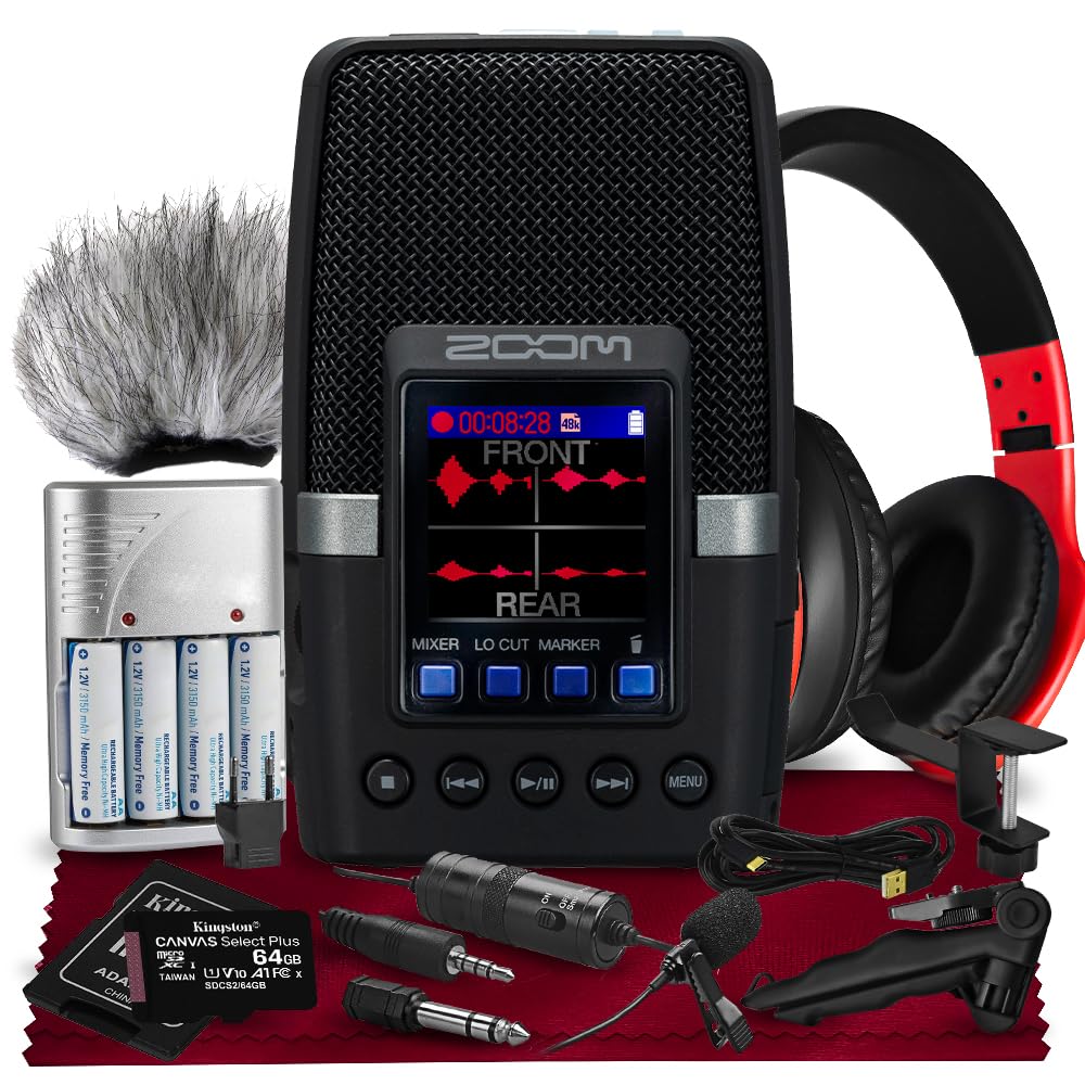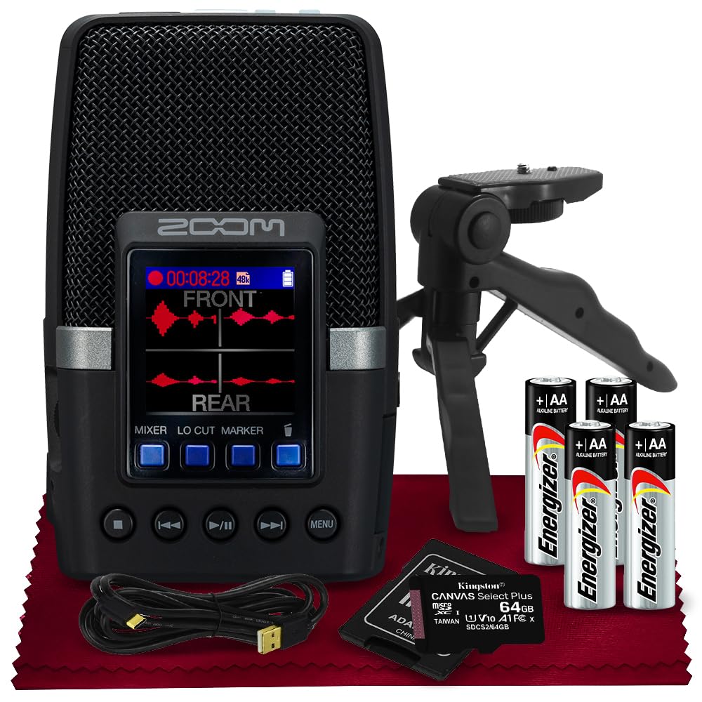 - Comprehensive Set – This Zoom H1 XLR Handy Recorder bundle includes SonicSound accessories - 1x Microfiber Cleaning Cloth, 2x Xlr cable M to F 10 feet, Kingston 64GB microSDXC Memory Card with SD Adapter, 1x USB 2.0 to c cable 3ft=1m, 1x Handgrip Tabletop Tripod, 1x Professional Lavalier Condenser Microphone, 4AA Rechargeable Batteries And Charger .