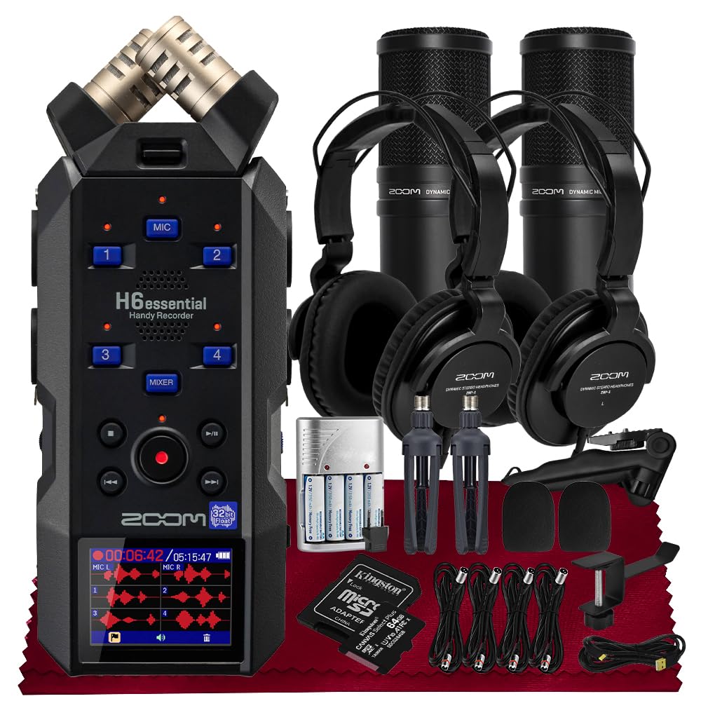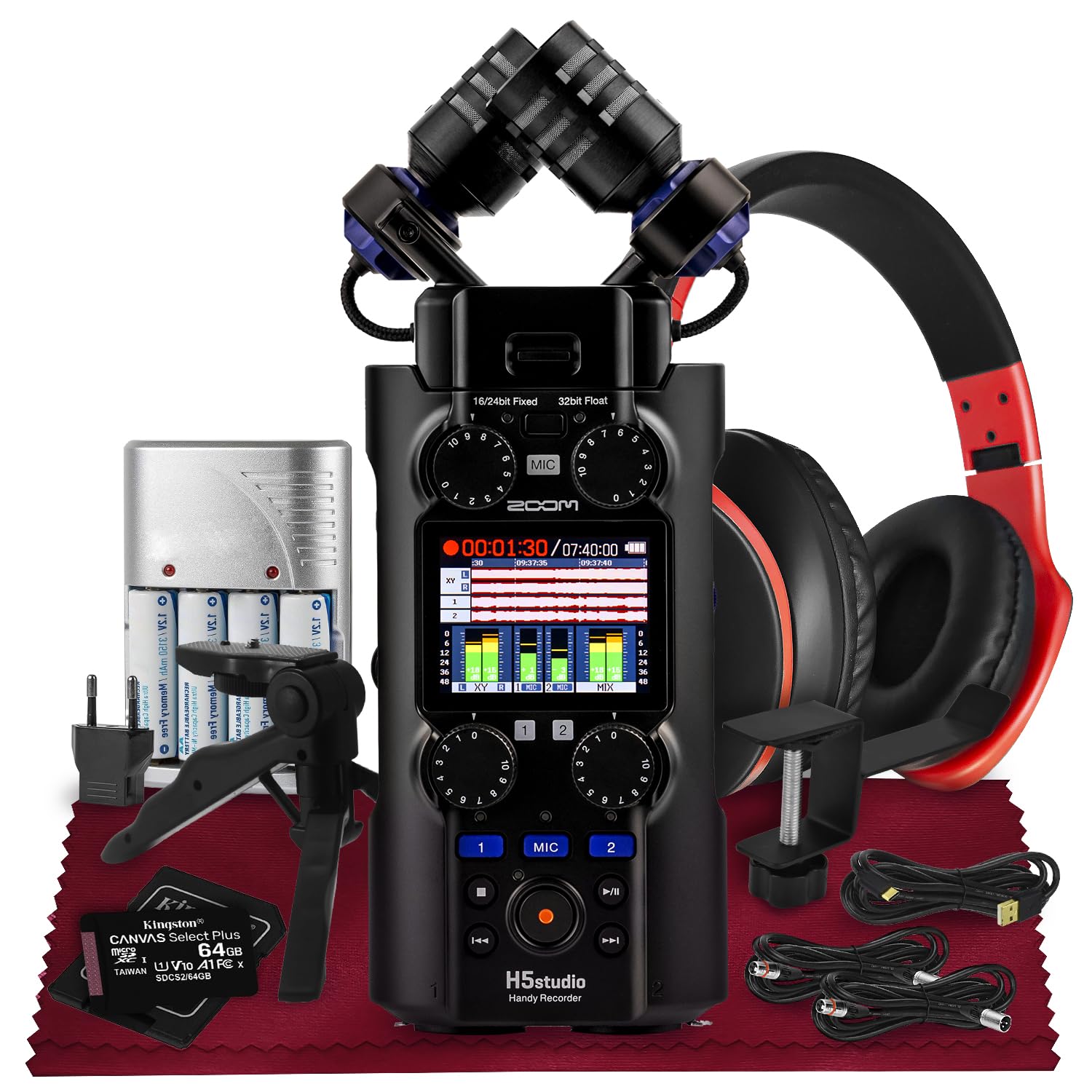 Zoom H1 XLR Handy Recorder, 32-Bit Float, 2 XLR/TRS Locking Combo Inputs, Dual AD Converters with 2 XLR Cables, Condenser Mic, Tripod, 64GB SD Card & More for Podcasters, Filmmakers, Musicians