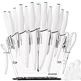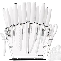 Astercook Knife Set with Block and Sharpener, 22 Piece Kitchen Knife Set Dishwasher Safe, Space-Saving Clear Knife Block with Knives for Everyday Home Cooking White