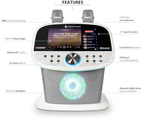- Unlimited Karaoke – No Phone Required Enjoy instant access to YouTube, Spotify, Apple Music, Amazon Music, Pandora, and Singing Machine Karaoke with built-in Wi-Fi apps. No CDs, no downloads, and no need to stream from your phone—just pure karaoke fun, anytime.