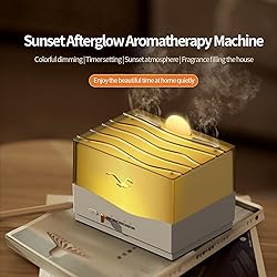 Essential Oil Diffuser, Sunset Afterglow Diffuser Humidifier, Cool Mist Humidifier with Auto Shut-Off Protection 7 Color Lights for Home Bedroom Office (Black)