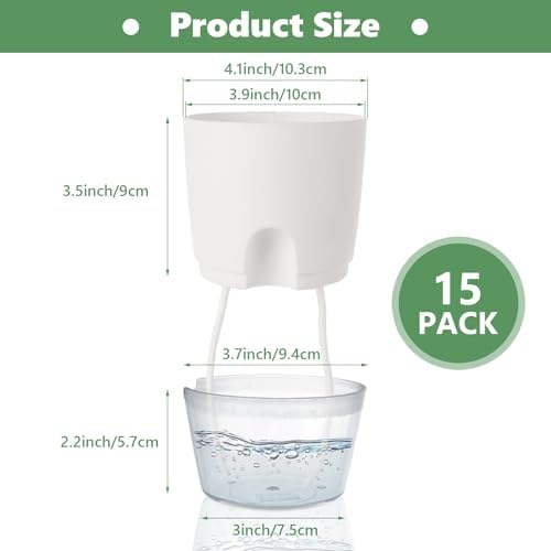 - Self Watering Planters Set: It contains 15 PCS of 4 inch self watering pots is perfect for keeping your plants hydrated and healthy. Say goodbye to wilted plants and hello to thriving greenery with these self-watering planters
