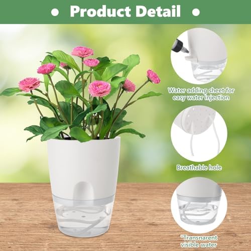 - Clear Water Storage: Our 4 inch self watering planters for indoor plants having a transparent design which allows you to see how much water is available for your plants and know when it's time for a refill , ensuring they always have access to the water they need
