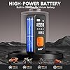 - [Super Battery & Dual Power Supply] - The high-performance 5C battery allows the air pump for car tires to run continuously for 1-2 hours without external power, saying goodbye to the trouble of rapid battery exhaustion and frequent charging. The car air pump can also work through the car's cigarette lighter cord without a battery, which is a reliable design.