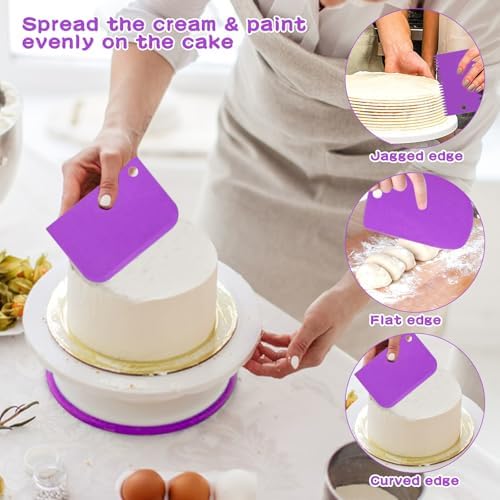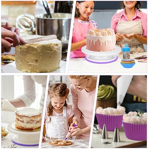 - 【Cake Making Kit】This baking essentials for home bakery features a smooth 360-degree rotating cake turntable, adjustable spatula, and multiple decorating tools. Designed to meet all your cake decorating needs, it helps you create stunning cakes, cupcakes, and desserts with ease and precision.