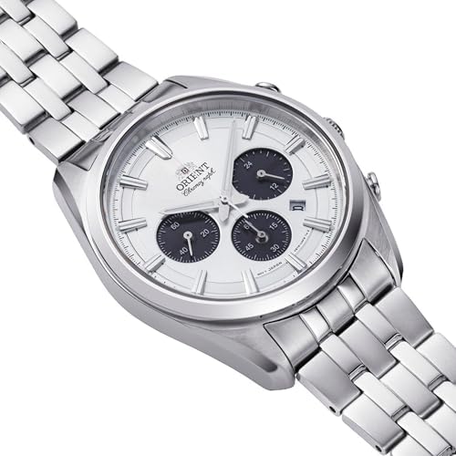 Orient Stretto Solar Chronograph 43mm White Dial Steel Strap Men's Watch RA-TX0305S10B