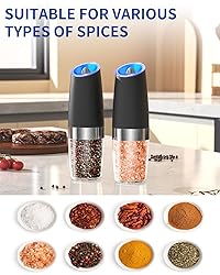 - 【Automatic Operation】The automatic salt and pepper grinder set uses advanced technology for easy one-handed operation. Simply flip the grinder to enjoy freshly ground spices without the need for manual grinding or pressing buttons. This salt and pepper grinder is a good helper for kitchens, restaurants, parties and outdoor picnics