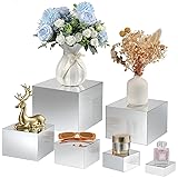 Geelin 6 Pack Acrylic Risers for Display Acrylic Cube Boxes Risers Display Stands with Hollow Bottoms Decorative Stand for Jewelry Candy Table Decor 6 Sizes(Silver,3 to 8 Inch,Square)