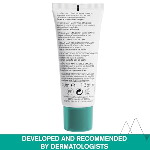 URIAGE Hyseac Mat Mattifying Gel-Cream | Primer & Moisturizer, Reduces Skin Shine, Absorbs Excess Sebum, Tightens Pores, Ideal Makeup Base, Light Cream, 40 mL / 1.35 oz
