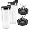 Ninja Blender Replacement Parts Compatible with Ninja BL480_30 BL490_30 BL640 BN401 BN751 BN801 CT680 NN100A NN101 NN102 BL2012, 2 Pack 24oz Ninja Blender Cups with To-Go Lids and 7 Fins Male Blades
