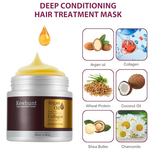 Collagen Hair Mask, Deep Conditioning Hair Mask Infused with Argan Oil, Plant Protein, Shea Butter, Hair Treatment Hydrating Repair Mask Essence for Dry Damaged Hair 16.9 oz 500ml