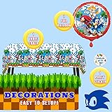 Unique Sonic the Hedgehog Party Bundle Plastic Table Cover 18” Foil Balloon 16 Round Plates with Celebrate With Me Sticker | Sonic Birthday Party Supplies for Kids