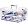 AZAZA 2-Layer Plastic Storage Box with Lid & Handle - Portable Transparent File Box for Organizing Photos, A4 Paper, Documents, Scrapbook, Art & Craft & Makeup | Paper & Art Supply Storage Organizer