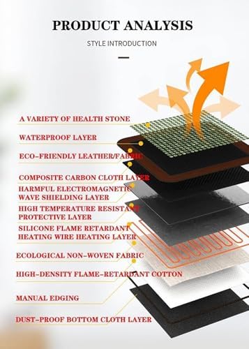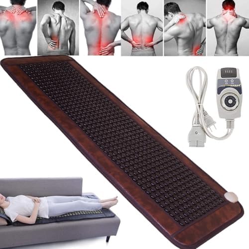 ★ Features:--We use natural jade stone as a material that is much more effective, penetrates deeper, reaches a higher temperature and allows for longer infrared heating compared to a traditional electric heat pad.--Far Infrared Therapy is a form of absorbable invisible light that penetrates the human body up to 6 inches deep into the tissues.--experience temporary relief in just 30 minutes.--It also has the function of adjusting temperature, for office workers, students, and the elderly Perfect Gift!★ Specifications:--Material: negative ion edge + tourmaline--Stone: germanite / jade stone--Size: 50 x 150 cm/19.7 x 59.1 inches--Weight: 7kg--Item Type: Massage and Relaxation--Massage area: Full body★ Package Contents:--1 x Infrared heating pad--1 x Smart Controller★ Note:--Do not fold the pad or cover the pad with rubber, foam coverings while heating.--Do not place solid objects on it and do not block the heating.--Do not leave unattended.